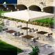 The model Galileo Retractable, much appreciated for the technical and practical use, is now also available with the frame powder coated in white. This variant makes the Galileo White even more elegant and sophisticated.[...] Details...  Central pole, telescopic and side post branded parasols (big size umbrella with brands stamped on) with wooden and aluminium frame.