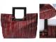 Description: Big Fashion Thai Silk Handbag with exclusive fabric and elegant wooden handle in hard dark wood. zippered make-up bag inside, additional phone bag. A magnet closes the bag at the top.